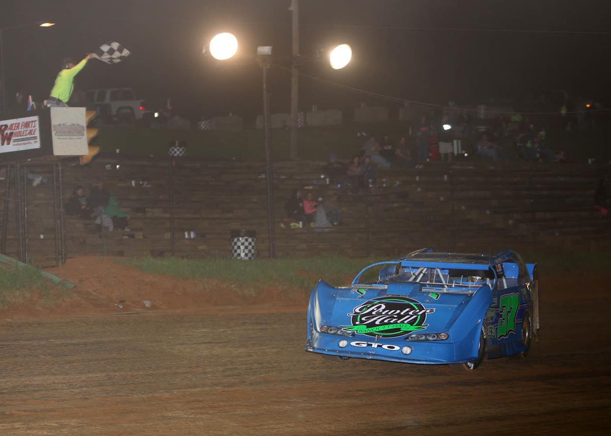 Darland, who races out of Lincoln, IN, took the green flag from outside the front row, and battled wheel-to-wheel with pole-sitter Chase Stockon for the first dozen laps before taking command. Although the top lane developed a very tricky cushion, Darland is the master of such conditions and pulled away to a nearly two-second advantage while Chris Windom worked –past Stockon for second position and Logan Seavey hustled from the seventh row to finish third.