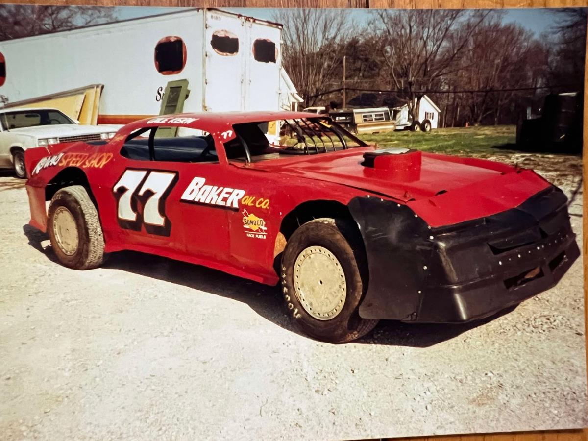 By 1991 he was ready to give stock cars a try. “Bob Cummings in Oolitic bent the cage for me,” he says, “and my wife and I built the car.” The last half of the previous sentence bears repeating as it will become a reoccurring theme in this tale. As for a number he decided that 77 would suit him fine. “That was my dad’s second car number,” he says, “Kenny Simpson had that number when he was a track champion at Brownstown. They had two 1970 Chevelles that looked exactly alike one was 75 and the other was 77.